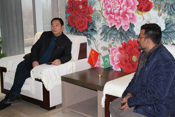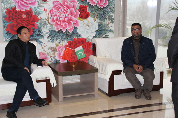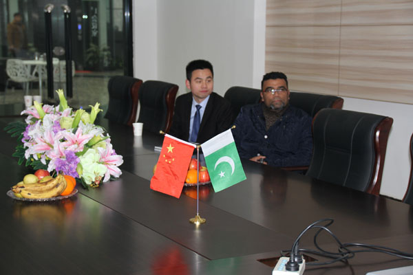 2015-1-24上午在東起集團在(外貿(mào)公司張總)的帶領(lǐng)下,一行四人來到公司,進行友好來訪,公司董事長王立建親自接待并陪同客人到車間觀摩。雙方在友好合作的前提下進行了細致的交談,并達成共識。巴基斯坦客人對東起公司做出了肯定,并草擬了合作意向書,此次來訪另客人在十分滿意的前提下***結(jié)束!